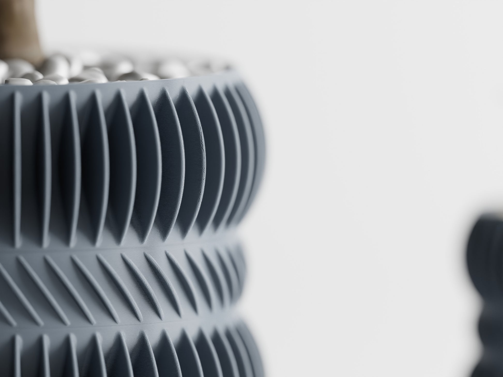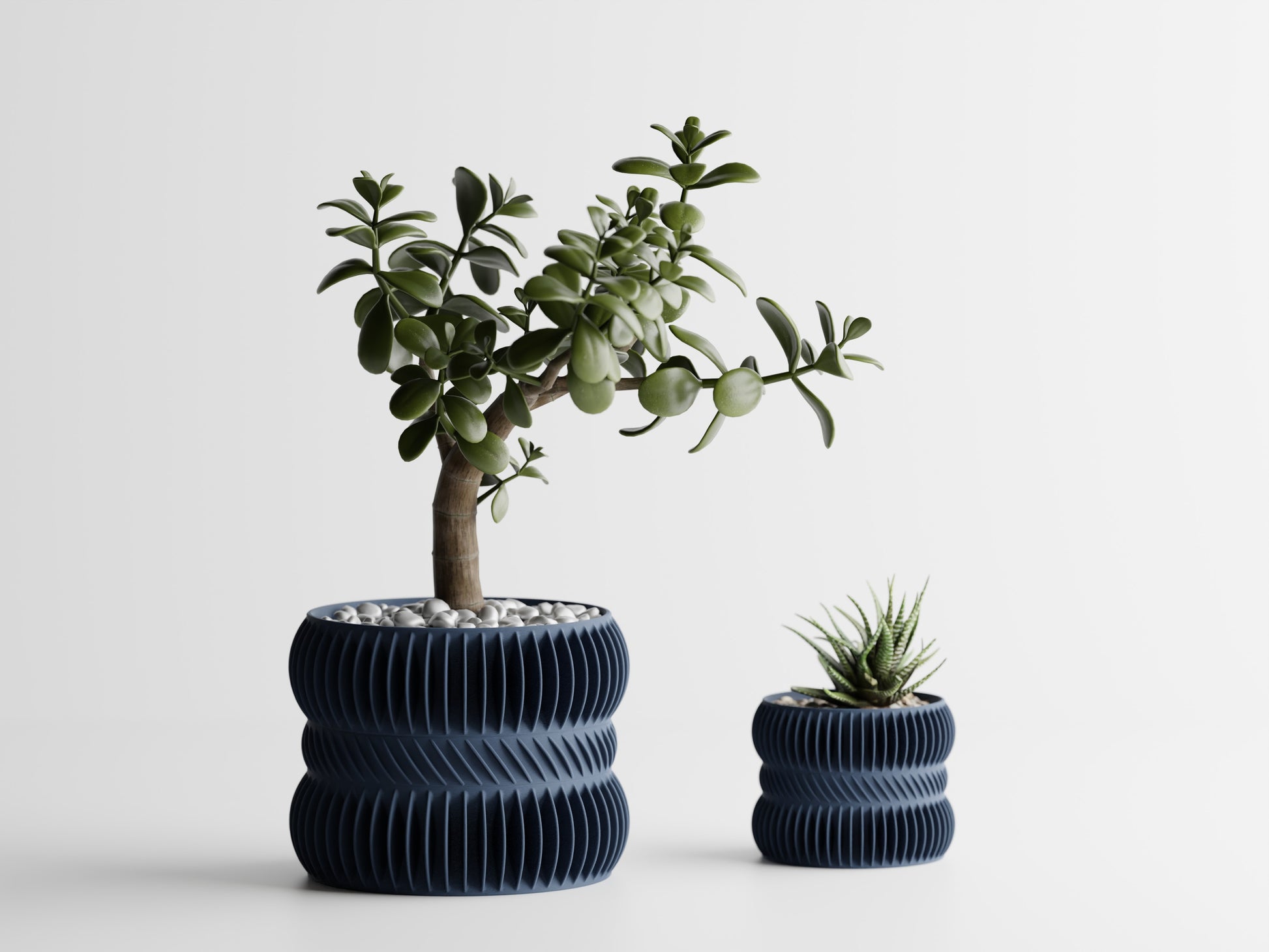 Der Striata Planter besticht durch seine charakteristische Struktur aus feinen, vertikal verlaufenden Linien, die Eleganz und Dynamik zugleich vermitteln. Das harmonische Spiel von Licht und Schatten unterstreicht ihre architektonische Formensprache und macht die Vase zu einem modernen Blickfang – sowohl einzeln als auch in Kombination mit weiteren Designs.