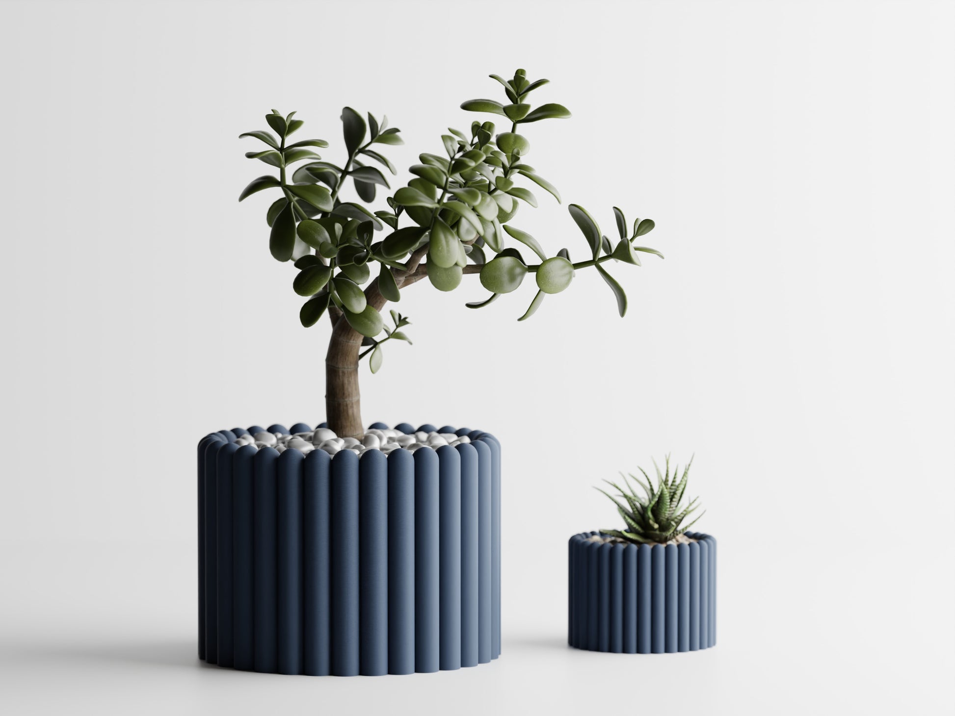 Der Fascis Planter fasziniert mit seiner markanten Struktur aus vertikal angeordneten Linien, die Dynamik und Klarheit zugleich ausstrahlen. Das rhythmische Spiel von Licht und Schatten betont seine architektonische Formensprache und macht ihn zu einem modernen Statement-Piece – ob als Solitär oder in Kombination mit weiteren Designs.